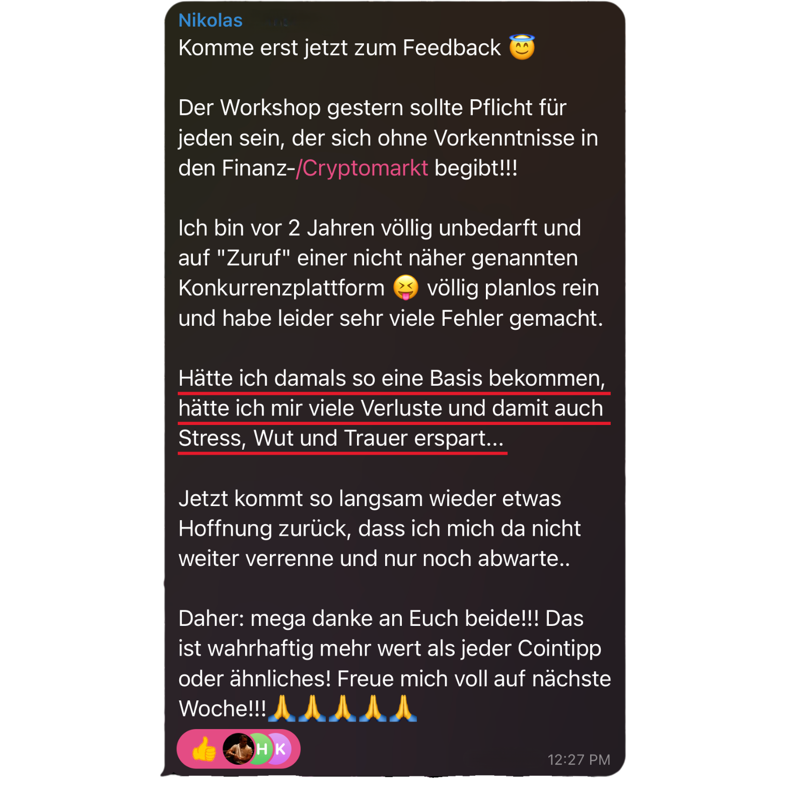 Ja! Du bist Teil unserer Telegram-Community – mit persönlichem Support von mir und meinem Team.Kein Bot-Blabla, sondern echte Menschen mit echtem Know-how.